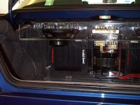 Hier wünschte der Kunde eine Variante bei dem die verbauten Komponenten sichtbar bleiben. Auch bei dieser Anordnung geht nicht viel Stauraum im Kofferraum verloren.