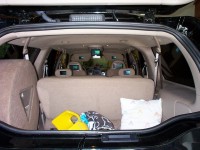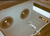 Die folgenden Fotos zeigen die Möglichkeit bei 2-türigen Fahrzeugen die hinteren Seitenteile als Versteck für Verstärker zu nutzen.